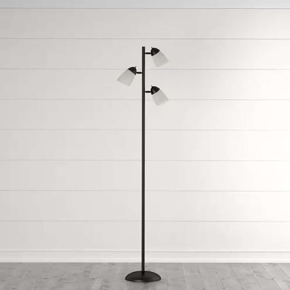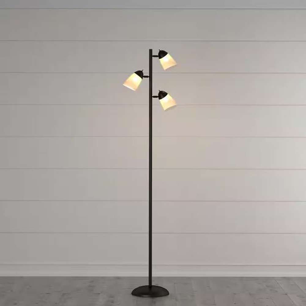 The Hampton Bay Track Tree Floor Lamp features three adjustable lamp heads, each equipped with a durable white plastic shade. The shades not only soften the light for a pleasant glow but also allow you to adjust and direct the illumination exactly where it’s needed. This makes the lamp an excellent option for highlighting décor, providing focused light for tasks, or filling the room with general ambient lighting.